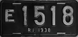| 1938 | Embossed white serial on black plate; "R.I. 1938" at bottom | none | A1234 | B1 to approximately P9000 | ||