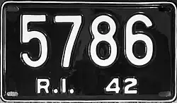 1942–43 | As 1940 base, but with "R.I. 42" at bottom | none | A-1234 | B-1 to approximately W-8000 | Revalidated for 1943 with windshield stickers, due to metal conservation for World War II. |
