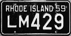 1959–60 | Embossed white serial on black plate with border line; "RHODE ISLAND 59" at top | none | AB123 | AA1 to WW999 |