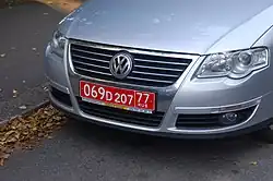 - ^ This type is not to be confused with the now defunct similar-looking yellow license plates having the format LL NNN L, which were issued prior to 2002 to cars registered to foreign companies operating in Russia; the latter type has now been withdrawn.