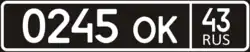 - ^ "Приказ МВД России от 28.03.2002 N 282 (ред. от 22.12.2014) "О государственных регистрационных знаках транспортных средств"" [Russian MVD Order 282 of March 28, 2002] (in Russian). Moscow, Russia: Ministry of Internal Affairs of the Russian Federation. December 22, 2014. Retrieved May 7, 2015.