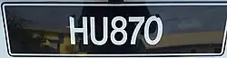 | White text on a black background. Occasionally black text on a white background. | Two letters followed by up to four digits. | Used by most vehicles. | |||