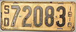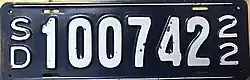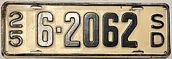 The U.S. state of South Dakota first required its residents to register their motor vehicles in 1905. Registrants provided their own license plates for display until 1913, when the state began to issue plates.[2]