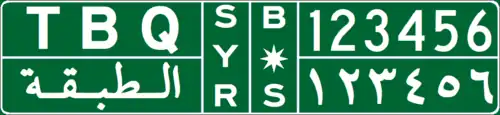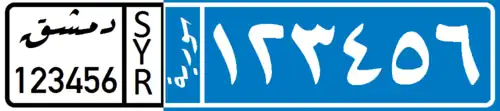 - ^ "النقل : نموذج جديد للوحات المركبات في سورية [Transportation: A new model for vehicle license plates in Syria]". Presidency of council of Ministers. 2024-09-23.