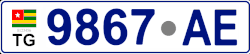 The number plates of Togo have a European shape and size. There are one-line and two-way license plates. The current scheme of regular license plates for private transport of Togo was introduced in 2007. It has a format 1234-AB, where 1234 is the number, AB is the series. Regular plates have a white background with dark blue or black signs. On the left side of the plate is an image of the flag of the country under which the TG code is located. There is a two-line version of such license plates in the format AB / 1234. There is no regional coding.[1][2]