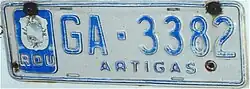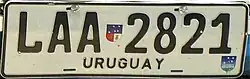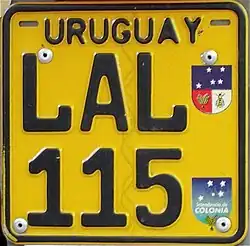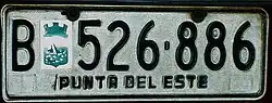 Maldonado was the only department that did not adopt the new alphanumeric license plate system for automobiles during the first decade of the 2000s (like the rest of the departments), except for motorcycles and some special license plates (such as those of ediles, intendencia, officials, tourism, professional freight transport, taxis and remises). Finally, on January 4, 2019, the department began to implement the Mercosur license plates,[7] with the particularity of indicating each municipality by a badge added below the patent plate (in addition to the second letter of the series).
