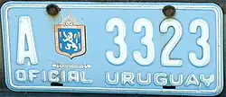 Caneloles Department—Official | A 1234 | white on blue | "OFICIAL URUGUAY" |