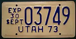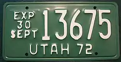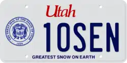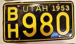 - ^ a b Tanner, Eric N. "Utah Passenger License Plates". allaboutlicenseplates.com. Retrieved November 10, 2020.