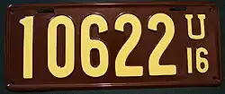 1916 | Yellow on brown; "U 16" at right | none | 12345 | 1 to approximately 13800 | |
