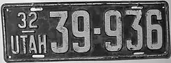 1932 | White on black with border line; "32 UTAH" at left | none | 12-345 | 1-500 to approximately 95-500 | |