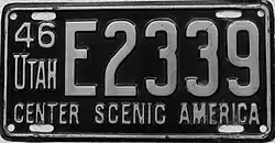 1946 | White on black with border line; "46 UTAH" at left | CENTER SCENIC AMERICA | A1234 | ||