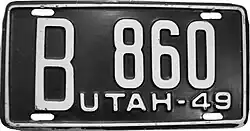1949 | White on black with border line; "UTAH - 49" at bottom right | none | A 1234 | ||