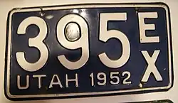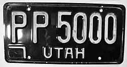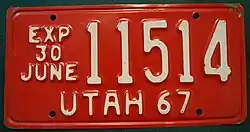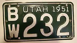 - ^ "Old Utah License Plates". LeatherLicensePlates.com. Retrieved June 10, 2017.