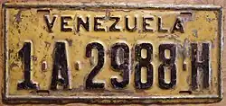 Venezuela requires its residents to register their motor vehicles and display vehicle registration plates.[1]