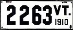 1913 | Black serial on white porcelain plate with border line; vertical "VT" and "1913" at left and right respectively | none | 1234 | 1 to approximately 6000 | |