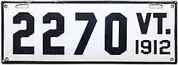1914 | Black serial on white porcelain plate with border line; vertical "1914" and "VT" at left and right respectively | none | 1234 | 1 to approximately 8300 | |