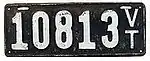 1917 | Embossed blue serial on white plate with border line; vertical "VT" at right | none | 12345 | 1 to approximately 20300 | |
