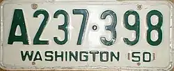 1950 | Embossed green serial on white plate; "WASHINGTON 50" at bottom | none | A123·456 AB·1234 |