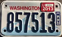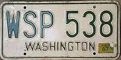 - ^ a b c d e Tanner, Eric N. "Washington Passenger License Plates". allaboutlicenseplates.com. Retrieved November 11, 2020.