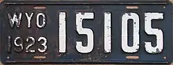 1923 | Embossed white serial on navy blue plate; "WYO 1923" at left | 12345 | 1 to approximately 36000 | |