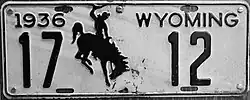 - ^ "New Wyoming Auto License Plates Appear". Weston County Gazette. Upton. October 15, 1936. Retrieved January 28, 2016.