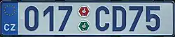 Since 2004 with the accession of the Czech Republic to the European Union, a blue European strip with the letters CZ and European stars have been added.