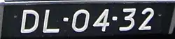 The Netherlands introduced a system of vehicle registration plates on 26 April 1898 – the third country in the world to do so, after France in 1893 and Germany in 1896.[3] A plate bearing the number 1 was issued to one J. van Dam, who purchased the first Dutch-built motorcar, which was manufactured at his own Groninger Motor-Rijtuigen Fabriek.[4] Plate numbers stayed with the owner, unlike the present system. From 1906, a new system used the format xx-ddddd, where xx was a province code and ddddd a serial number. This system lasted until 1951 when the current system was introduced.