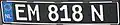 Used for trailers with a maximum weight of less than 750 kg, registration matches the vehicle pulling the trailer. Also used for export, temporary and provisional (single coded, H for 1 month and Z for 1 week) vehicles. |