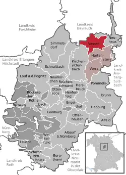 Location of Velden within Nürnberger Land district ![]() | |