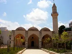 Veli Pasha Mosque was built outside the walls by a supporter of Gazi Hüseyin Pasha on the site of an older Christian church dedicated to Saint Onuphrius.[1][2] It is associated with the conquest of Rethymno by the Ottomans in 1646; on the site that the Ottoman troops made their military camp, the Muslim community of the town would later erect the mosque of Veli Pasha, perhaps around 1651.[3] The oldest attestation of the mosque goes back to 1657, in the account of the local governor of Rethymno.[4]