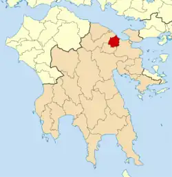 Velo-Vocha (Greek: Βέλο-Βόχα) is a municipality in the Corinthia regional unit, Peloponnese, Greece. The seat of the municipality is the town Zevgolateio.[2] The municipality has an area of 164.847 km2.[3]