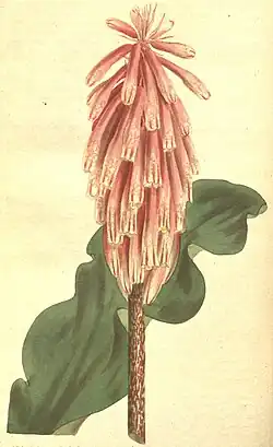 Veltheimia capensis is one of two species of flowering plants belonging to the genus Veltheimia, of the family Asparagaceae. It is a tender bulbous perennial reaching a height of 46 cm (18 in), with flowers varying in color from white with red spots to pink with green or red markings.[1][2]
