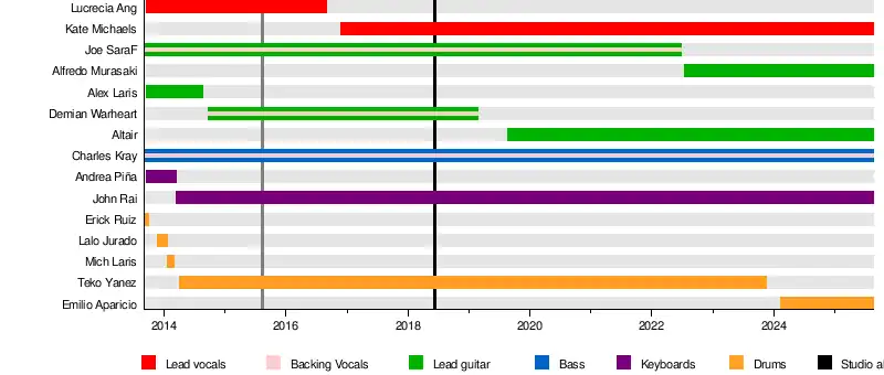 | Past members | Joe SaraF Rob “Teko” Yanez Lucrecia Ang Demian Warheart Alex Laris Andrea Piña Mich Laris Lalo Jurado Erick Ruiz |