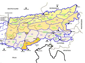 | Borders on | Brescia and Garda Prealps, Dolomites, Carnic and Gailtal Alps and Venetian Plain |