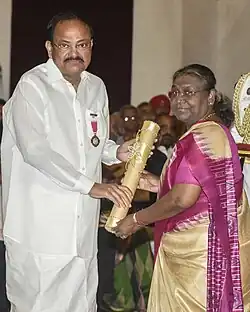 Naidu has also served as the national president of Bharatiya Janata Party from 2002 to 2004.[7] Earlier, he was the Union Cabinet Minister for Rural Development in the Atal Bihari Vajpayee government.[8][9] He took the oath as the vice president of India and the chairman of the Rajya Sabha (ex-officio as the Vice President) on 11 August 2017.[10] In 2024, The Government of India honoured him with Padma Vibhushan, India's second highest civilian award.[11][12]