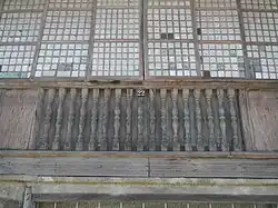 The ventanilla is often used on upper floor windows, as in the bahay na bato. As the lower part of a composite window, its larger upper part is typically a window with sliding capiz shell-paned panels. The ventanilla is just under this upper large window's sill and is typically made with sliding panel-covers behind balusters or grills.[5][3]