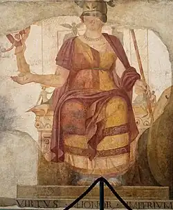 Venus Felix ("Lucky Venus"), probably a traditional epithet, combining aspects of Venus and Fortuna, goddess of both good and bad fortune and personification of luck, whose iconography includes the rudder of a ship, found in some Pompeian examples of the regal Venus Physica. A form of Venus usually identified as Venus Felix was adopted by the dictator Sulla to legitimise his victories over his domestic and foreign opponents during Rome's late Republican civil and foreign wars; Rives finds it very unlikely that Sulla would have imposed this humiliating connection on unwilling or conquered domestic territories once allied to Samnium, such as Pompei.[35] The emperor Hadrian built a temple to Venus Felix et Roma Aeterna on the Via Sacra. The same epithet is used for a specific sculpture at the Vatican Museums.