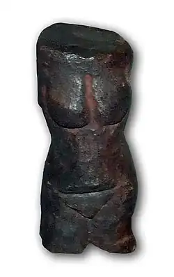 The statue measures 4.5 x 1.5 x 1.4 cm and is a headless torso of a woman carved from iron ore (hematite). Uniquely, the absence of the head appears to be the author's intention. Also, unlike other prehistoric Venus figurines, it shows a slender young woman or girl with small breasts.[1]