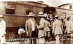 Outside his home bailiwick of Coahuila in exile in Sonora, Carranza had to broaden his movement, which in Coahuila had drawn on state elites. In Sonora, which was more isolated geographically from Mexico City since there was no direct railway line, the revolution had gone at a faster pace than in Coahuila. The region was in many ways autonomous because federal troops could not be quickly dispatched and there were natural resources to draw on for the armed struggle.[29] Carranza met Sonoran revolutionaries who came from middle and working-class backgrounds. He was able to attract to his movement able men not trained as soldiers. These included Álvaro Obregón, who as a widower with small children at the time did not join in Madero's earlier movement; and Obregón's cousin Benjamin G. Hill, and Plutarco Elías Callesí. Others included Pablo González; Manuel Diéguez, who had participated in the Cananea strike; Heriberto Jara, who was a former textile worker who participated in the great Río Blanco strike. Carranza also attracted intellectuals to his movement, especially Luis Cabrera and Pastor Rouaix.[30] Carranza also gained the support of Francisco Villa of Chihuahua, who had played an important role in toppling the Díaz regime.