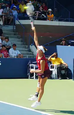 Vera Igorevna Zvonareva[a] (Russian: Вера Игоревна Звонарёва, IPA: [ˈvʲerə ˈiɡərʲɪvnə zvənɐˈrʲɵvə] ⓘ; born 7 September 1984) is a Russian inactive professional tennis player. Her career-high singles ranking by the WTA is No. 2 and in doubles world No. 7.[2] Zvonareva has won twelve career singles titles, including the 2009 Indian Wells Open,[2] and reached the finals of the 2008 WTA Tour Championships, 2010 Wimbledon Championships, and 2010 US Open. She was also a bronze medalist at the 2008 Beijing Olympics.[3]