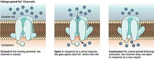 The neurotoxicity of Veratrum alkaloids derives from their effect on the sodium ion channels of nerve cells. They activate receptor site 2 of the voltage-dependent Na+ channel in membranes by prolonging its open state.[26] The alkaloids depolarize nerves by enhancing exchange of Na+ and K+ across the membrane.[27]
