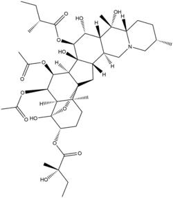 - ^ Ujvary, Istvan; Eya, Bryan K.; Grendell, Richard L.; Toia, Robert F.; Casida, John E. (October 1991). "Insecticidal activity of various 3-acyl and other derivatives of veracevine relative to the veratrum alkaloids veratridine and cevadine". Journal of Agricultural and Food Chemistry. 39 (10): 1875–1881. doi:10.1021/jf00010a039. ISSN 0021-8561.