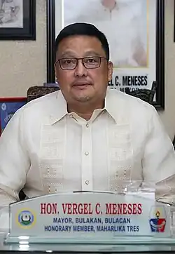 Vergel Corpuz Meneses (born January 14, 1969) is a Filipino retired professional basketball player and a politician, serving as mayor of the municipality of Bulakan, Bulacan. He previously played in the Philippine Basketball Association and served as the former head coach of the JRU Heavy Bombers of the NCAA Philippines. He is also a former PBA Most Valuable Player and a many-time member of the Philippine national team.[1]