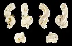 These sea snails are characterized by an unusual appearance and lifecycle. The very young snails do not differ from other snails, as they have a conical, spiral shell. Later they fasten to a hard substrate using calcareous secretions, and the shell starts to take the form of an irregular tube. The length of the adult shell is about 30–50 millimetres (1.2–2.0 in) and the cross section of the shell can reach up to 6 mm in diameter. The small operculum is concave. This is a sessile gastropod the shell of which is cemented to the substrate.[3][4]