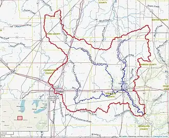 ![]() Map of the Vermilion River (including the Salt, Middle, and North forks) highlighted within the Wabash River watershed. | |