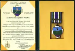 The Vermont Patriots Medal is an award of the state of Vermont. It is presented to the next of kin of each Vermont military service member who is killed in armed conflict. The award was first authorized in 1966, during the Vietnam War, but presentations did not commence until 1996.
