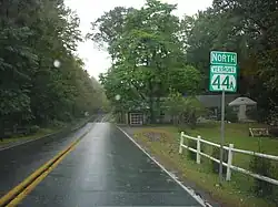 According to a 1927 report prepared by the federal Bureau of Public Roads and the Vermont State Highway Department, the unnumbered Reading–Windsor road had a surface-treated gravel surface. The towns through which the highway passed maintained the road with financial aid from the state.[2] The town of Windsor reconstructed the surface-treated gravel road outside the town center in 1940 and 1941. West Windsor reconstructed their gravel road in 1941 through Brownsville and in several segments outside of Brownsville between 1946 and 1952, and Reading reconstructed their short portion of the highway in 1948.[1] In 1958, the three towns petitioned the State Highway Board to accept the portion of the highway outside the Windsor town center into the state highway system, a request the state approved. The state took over maintenance of the highway from VT 106 to the Windsor village boundary and established VT 44 through separate agreements that went into effect in December 1958 and January 1959.[3]