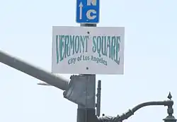 In the 1997, in an effort to distinguish the area from South Central Los Angeles, residents of Vermont Square met with historian Gregory Fischer to discuss neighborhood signage. Fischer had helped design historic signage for the Victoria Park neighborhood.[1][5] Vermont Square signage is installed on Vermont Avenue at King Boulevard.