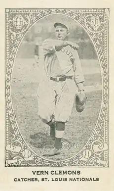 Verne James Clemons (September 8, 1891 – May 5, 1959) was a professional baseball player. He played all or part of seven seasons in Major League Baseball, primarily as a catcher. He made his major league debut for the St. Louis Browns in 1916, then returned to the majors for the St. Louis Cardinals for six seasons, from 1919 until 1924.