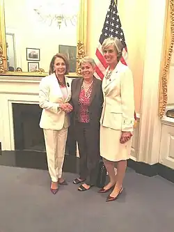 Speaker of the House Nancy Pelosi, Veronica Serrato, and Congresswoman Katherine Clark - Victor Garo Public Service Award, Boston University School of Law, 2015[13]